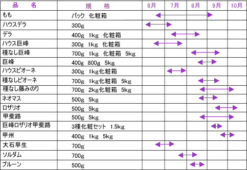 こだわり もも ぶどう プラム出荷カレンダ−